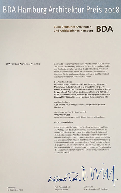 upTOWNHOUSES erringen 2.Platz beim WohnbauPreis 2020